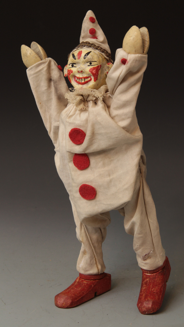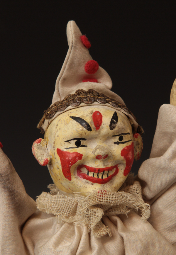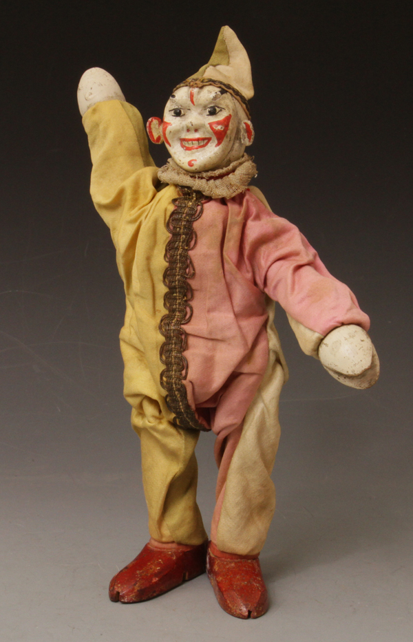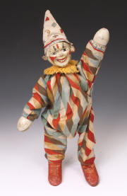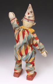 Clown - two-part-head in Harlequin suit. Suit is an early version