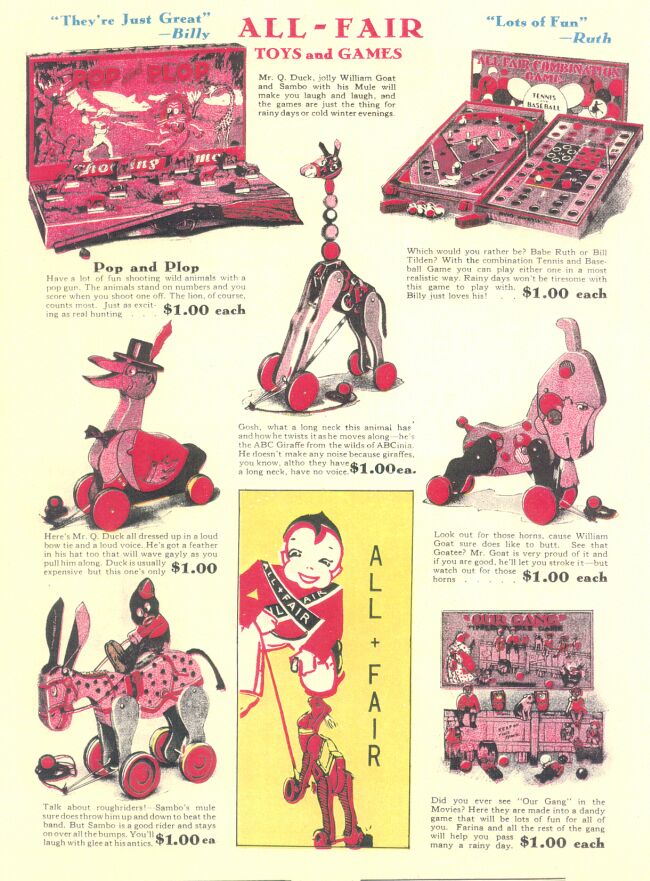 ![]() 1930 Ad All Fair ad from "Billy and Ruth" catalog ca 1930 |