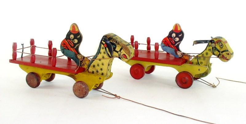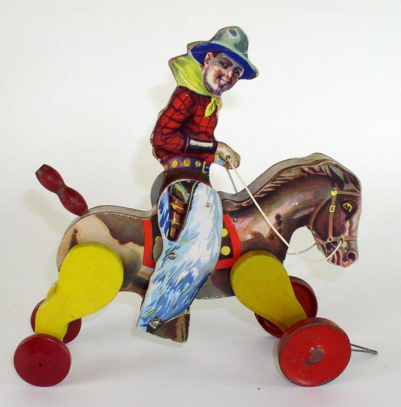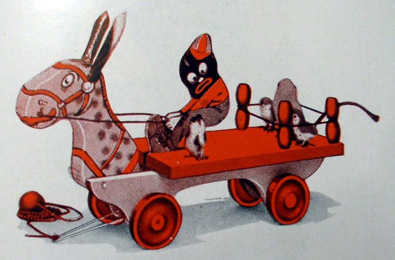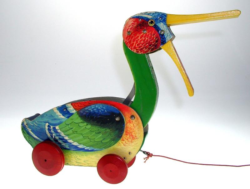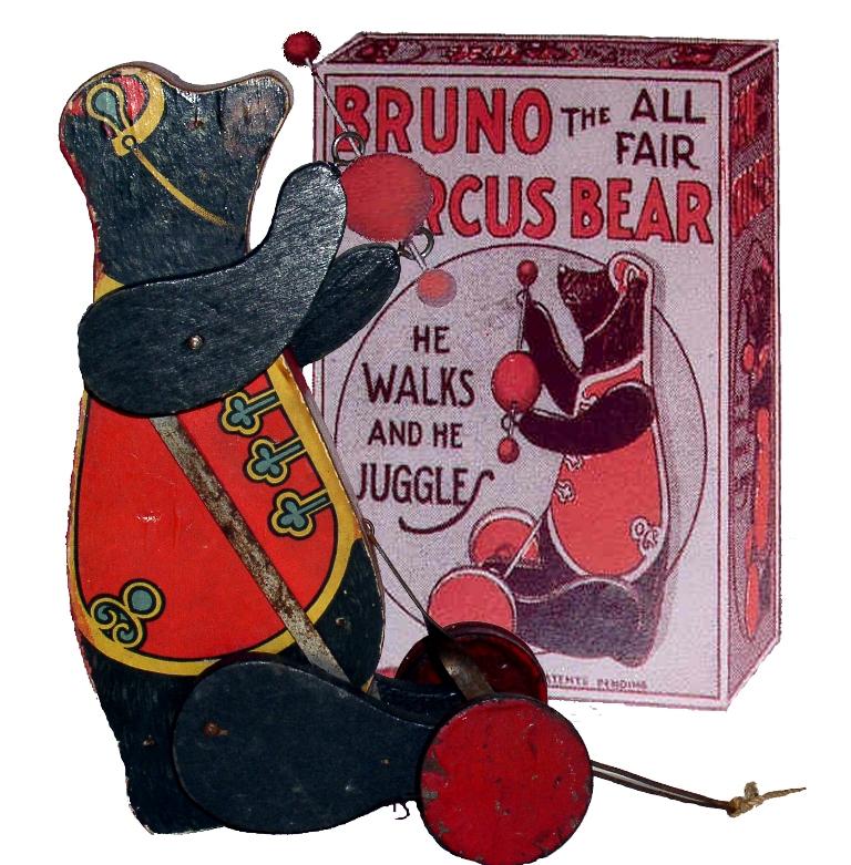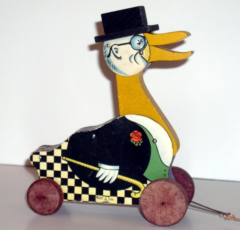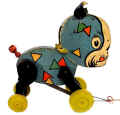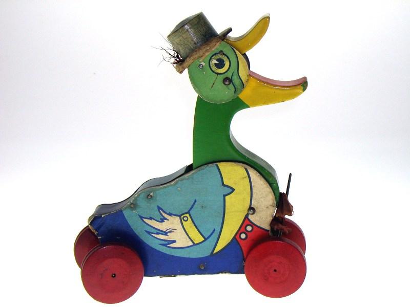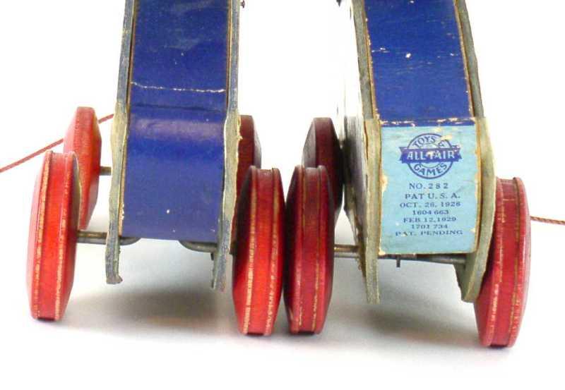 All-Fair Toys and Games Still interested in the manufacturing of toys, and with the encouragement of Elbert Hubbard II, Fisher decided to move to East Aurora, NY. Then, combining efforts with Irving Price, who handled the financial and managerial efforts, and Helen Schelle, who had a background in toy sales, he formed the Fisher Price Toy Company. Also moving to East Aurora from All-Fair, were Jesse Brice and Russell and Stella Frew, all of whom continued with Fisher Price for many years. Jesse Brice, superintendent of factory production, was a toy lover who also designed and made toys at home as a hobby. In the late forties, deciding to produce his own line of toys, Brice left Fisher Price and formed the Brice Toy and Novelty Company. The Brice Toy and Novelty Company continued until 1952, when Brice left and Albert Wallenwein, company treasurer, incorporated a new company under the name of East Aurora Toy Corporation. This company produced toys until the mid fifties. When the East Aurora Toy Corporation folded, it has been said that Herman Fisher bought the existing tools to keep anyone from starting up again. |