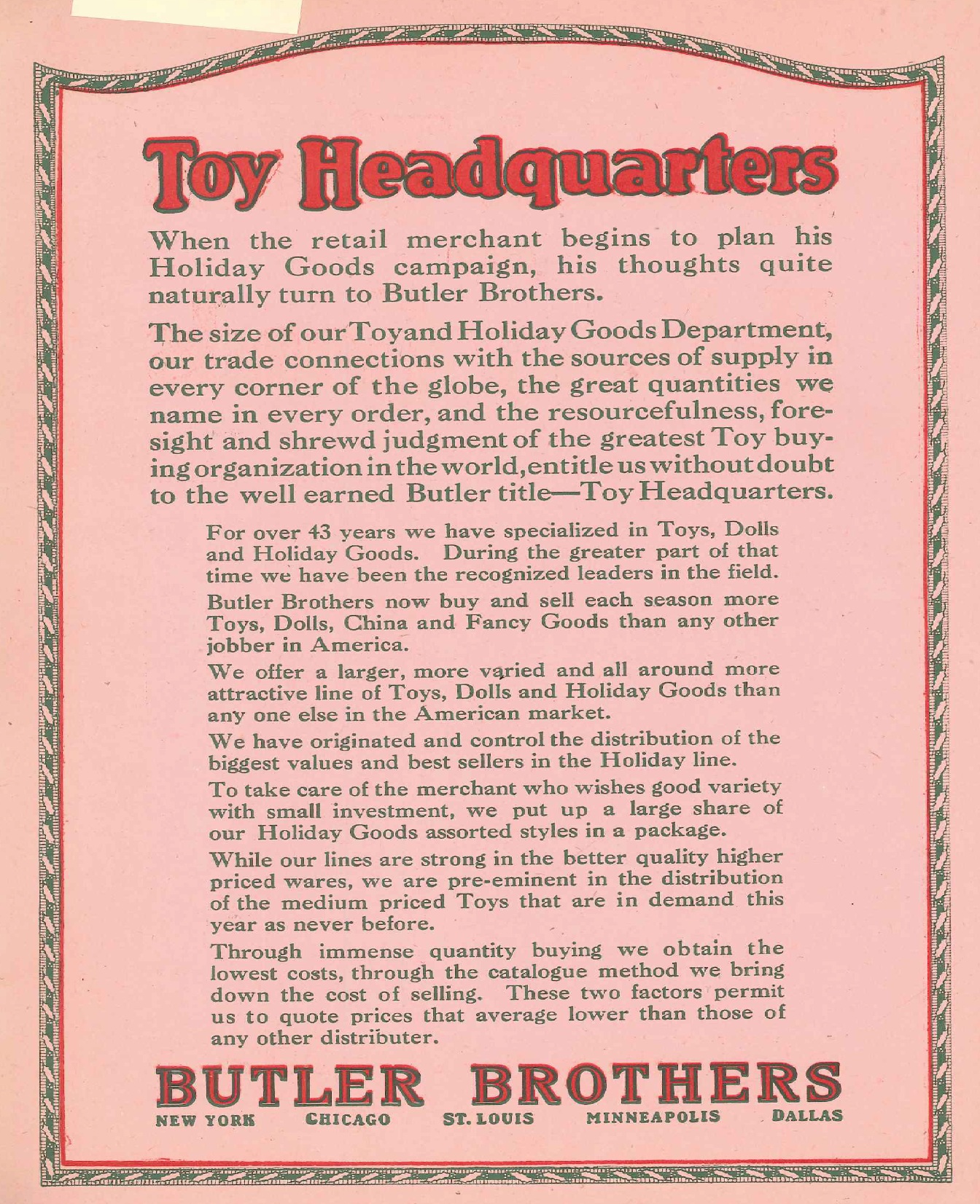 ~ Home ~ Toy Companies ~ Toy Catalogs ~ Butler Brothers Catalogs ~