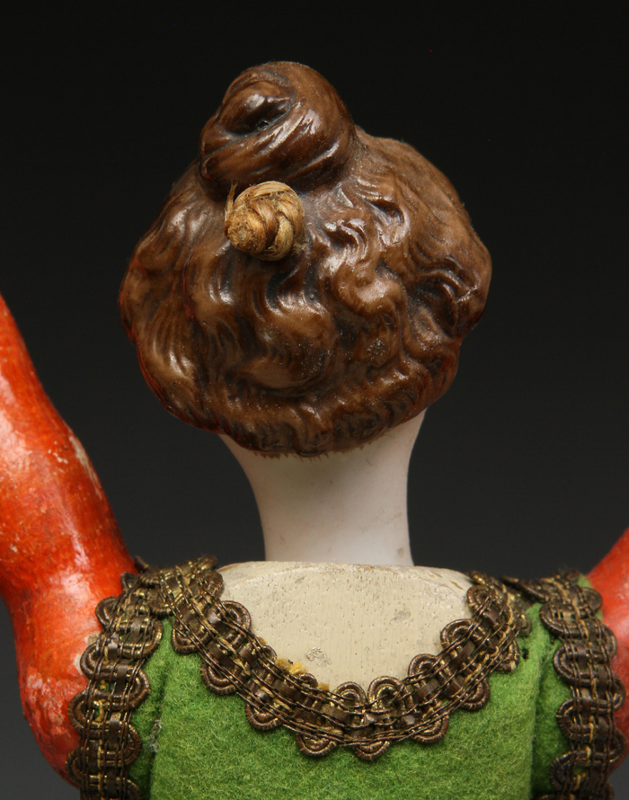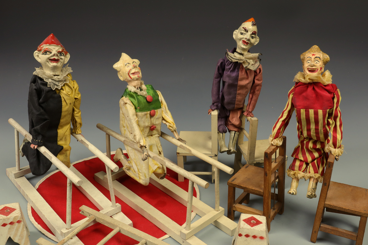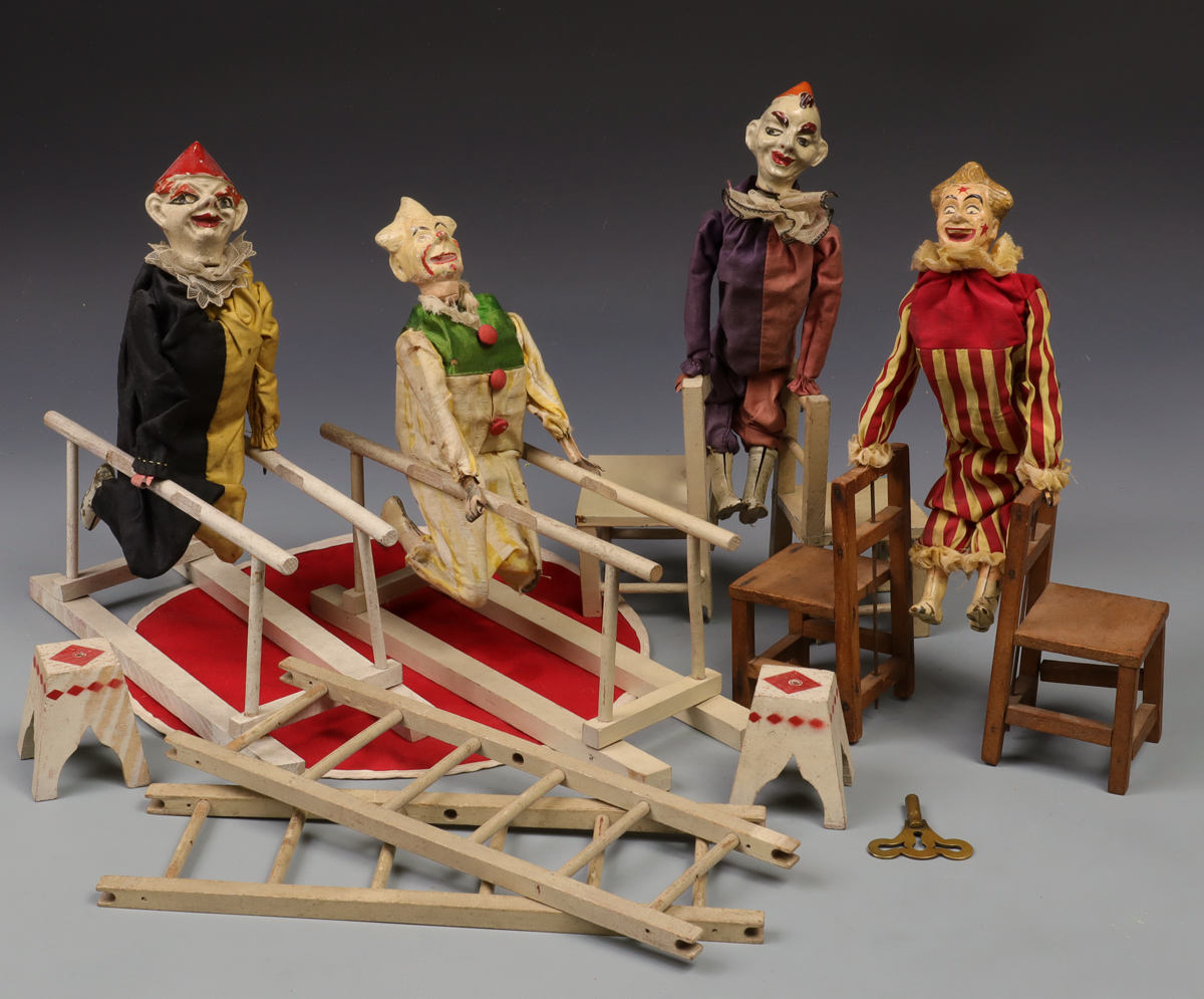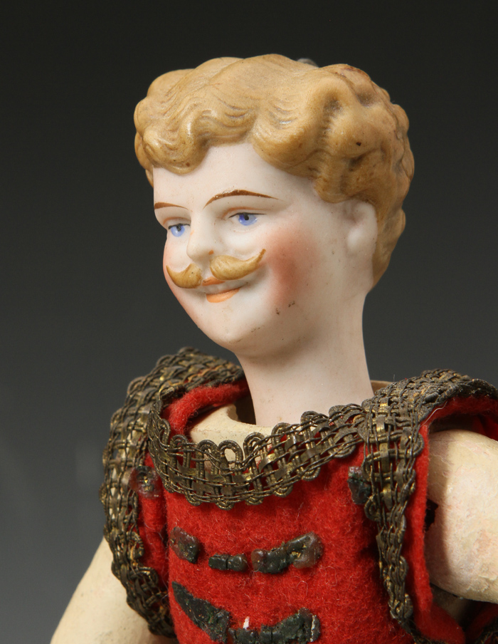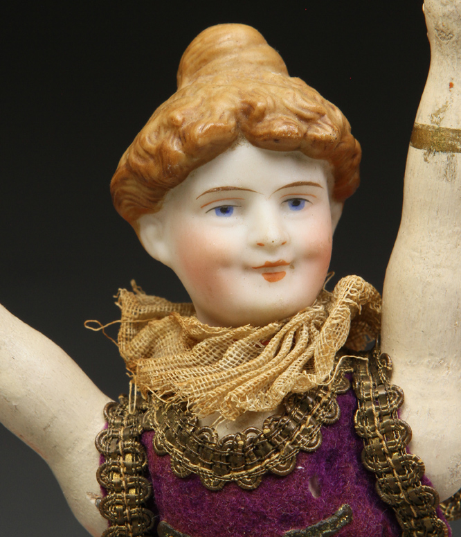 Colors of the Bisque Head Gent Acrobats - from left, Brown, Black, Blond,
