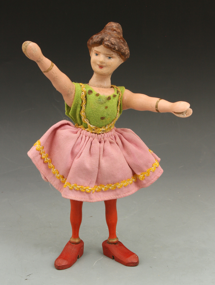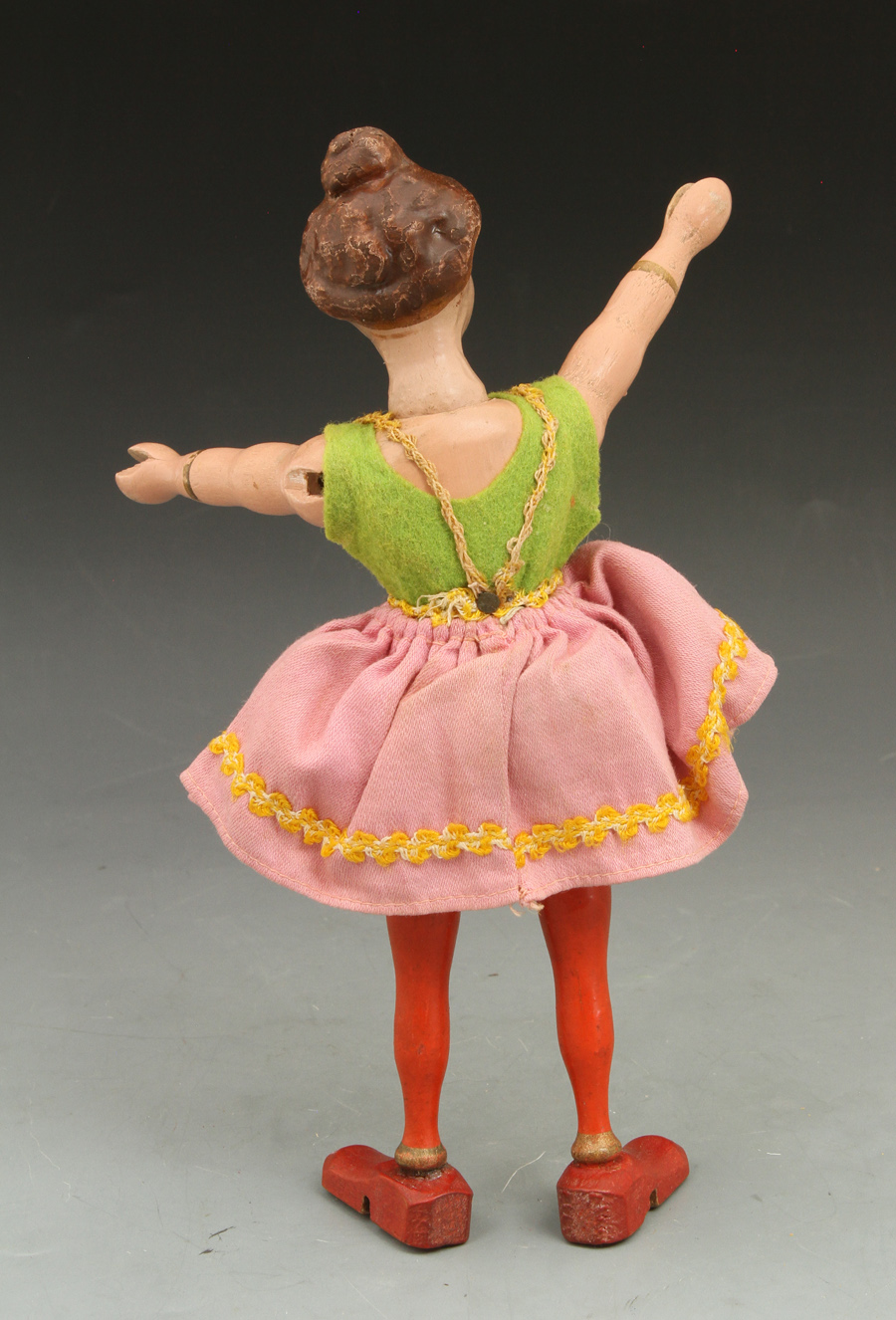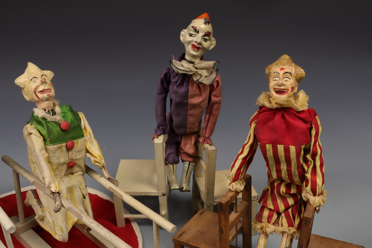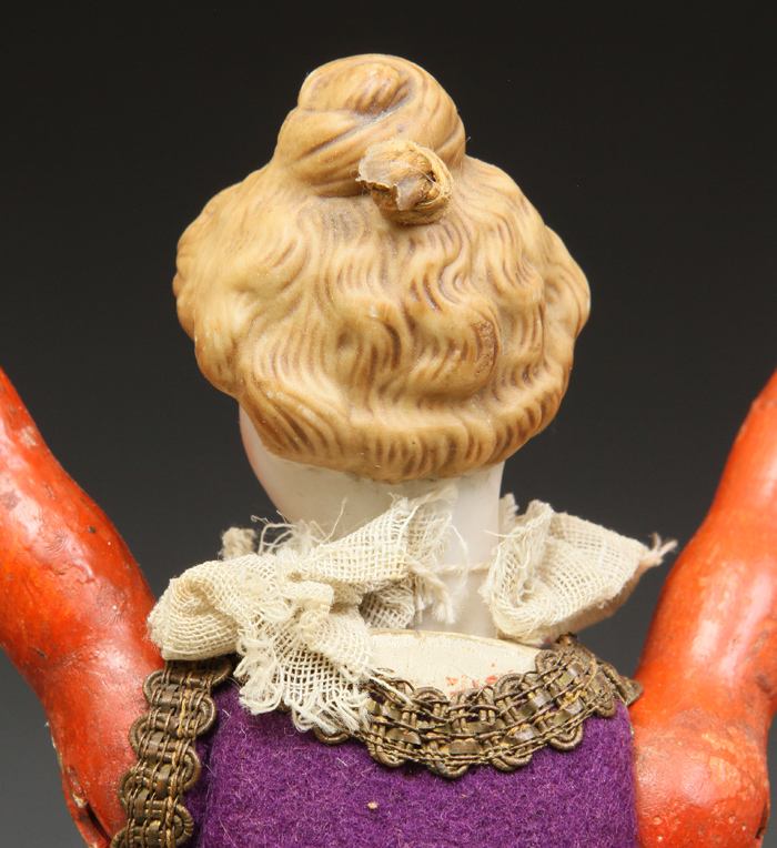 Colors of the Bisque Head Gent Acrobats - from left, Brown, Black, Blond,