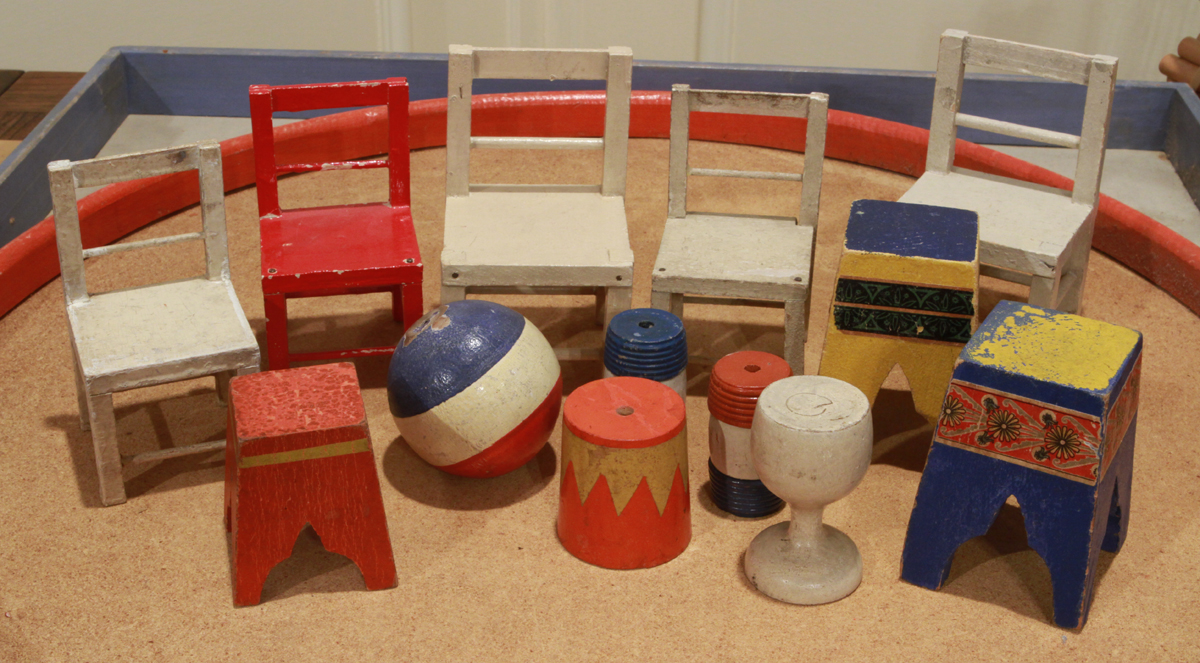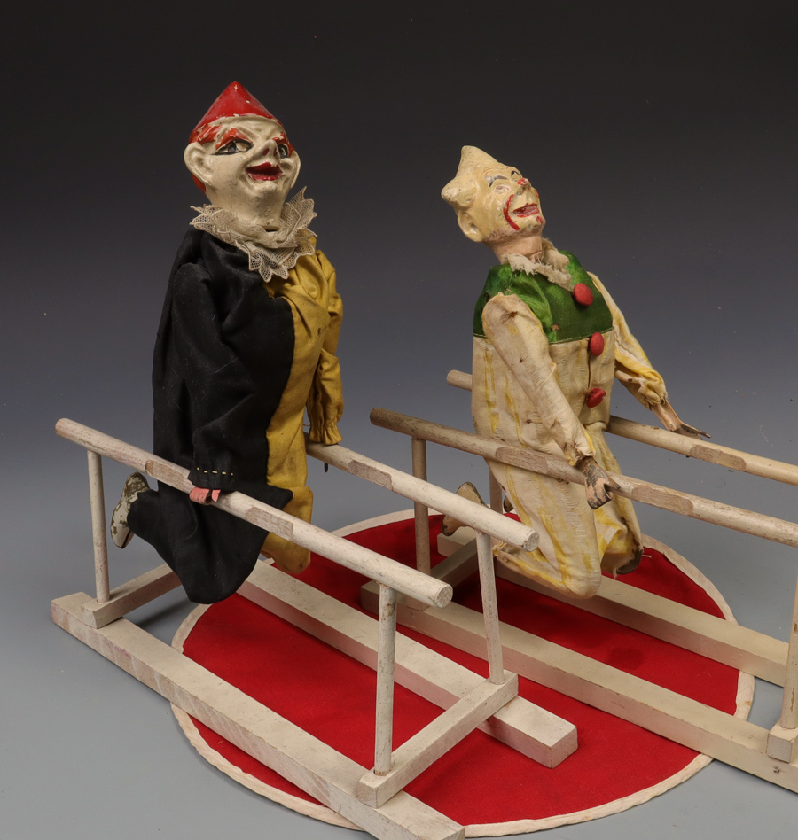 acrobats. Wear to stanchions. Metal bar is not original but I think it works