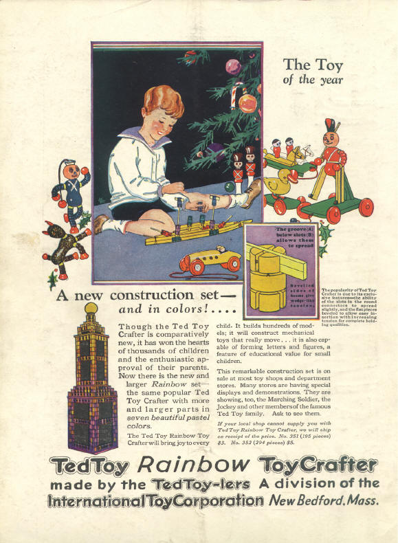 This ad was the back cover on this December 1928 issue of Child Life. By this time, The Ted Toy-lers are a division of International Toy Corporation.