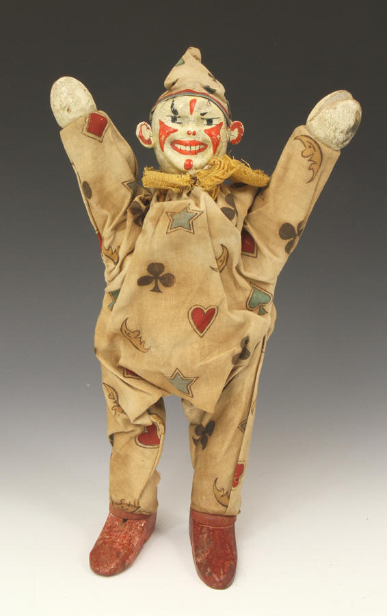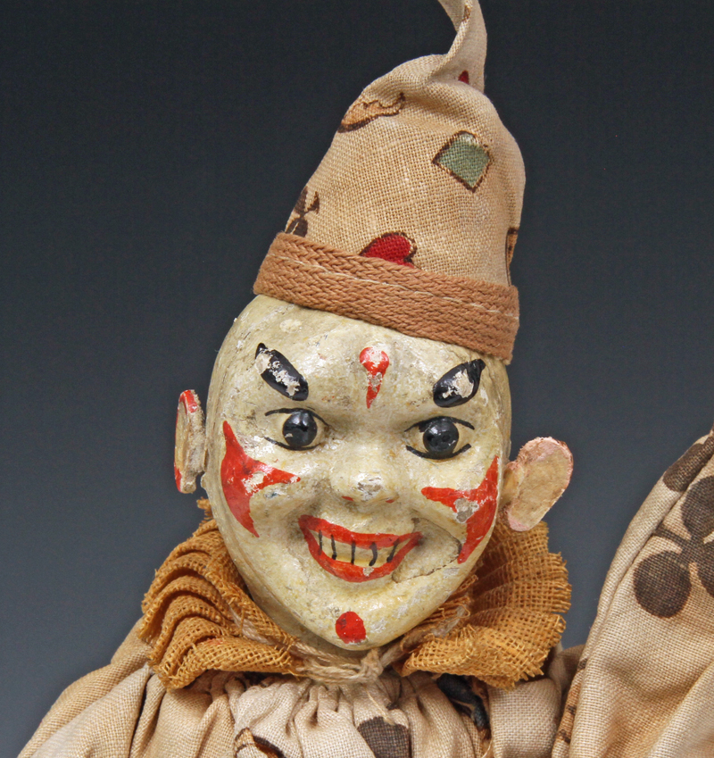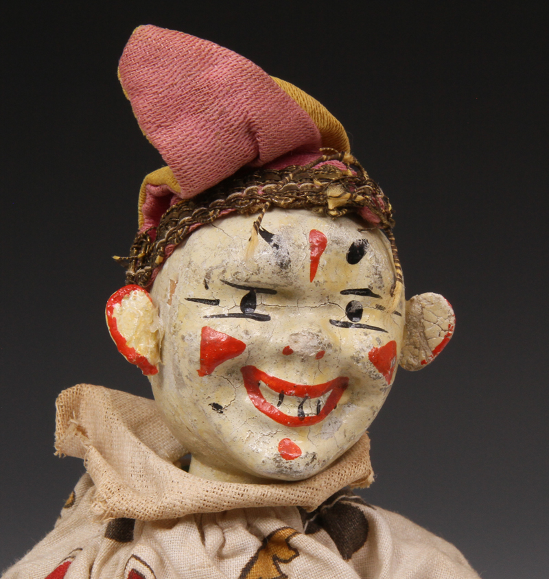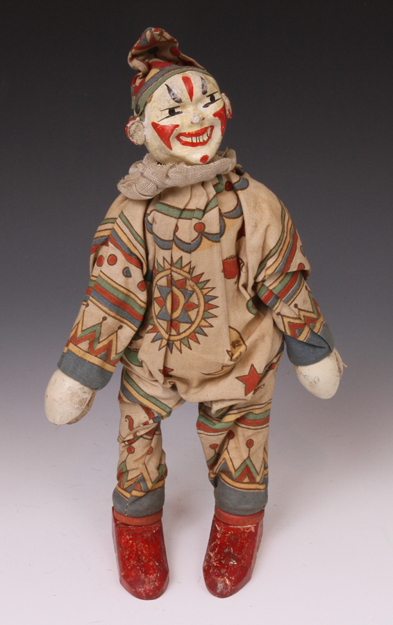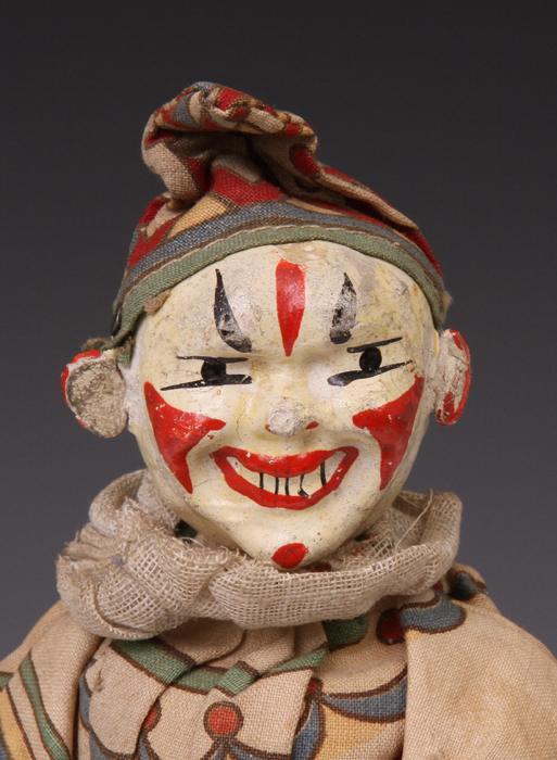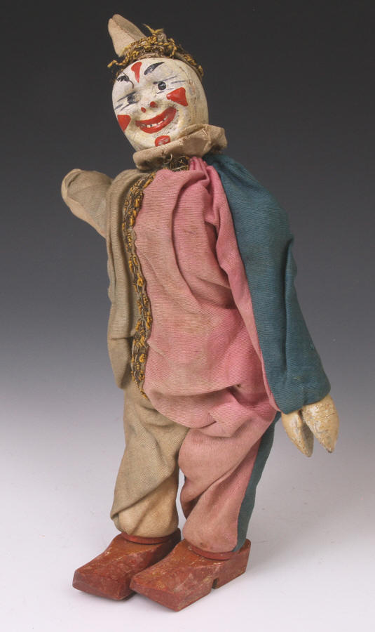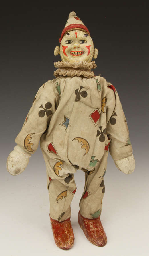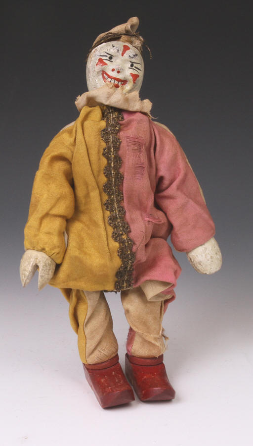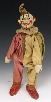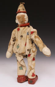 clown from ca 1920s. A little paint loss to face. Suit material strong - no