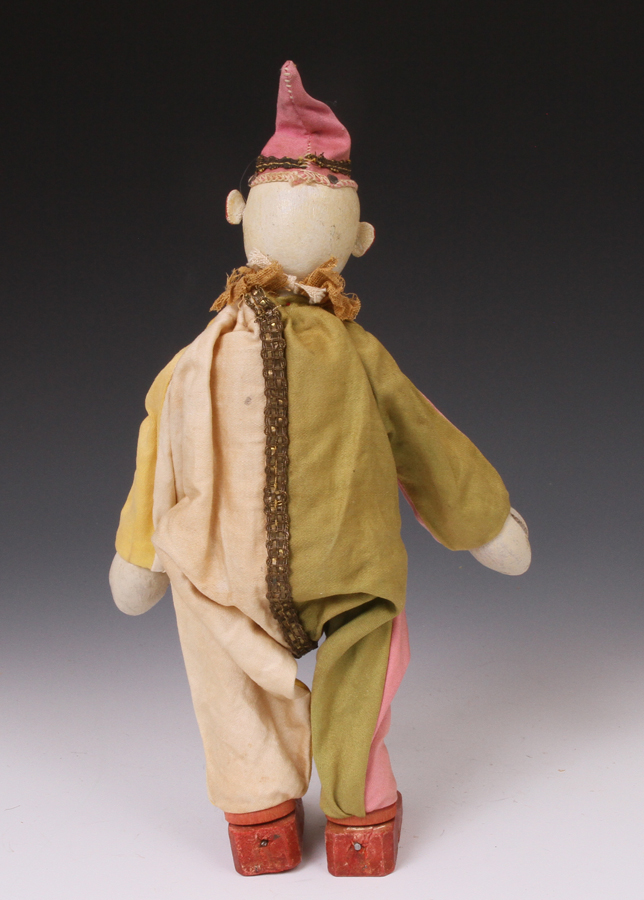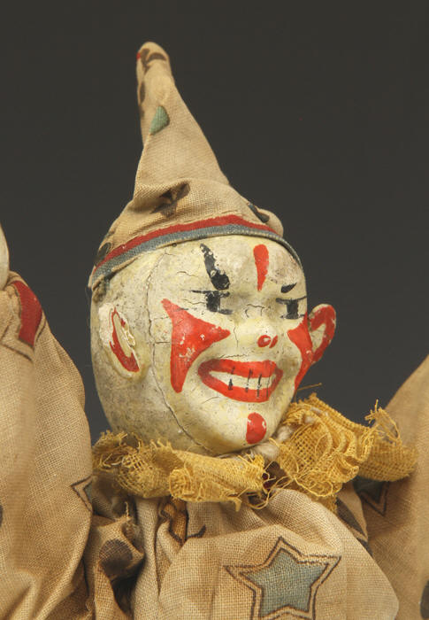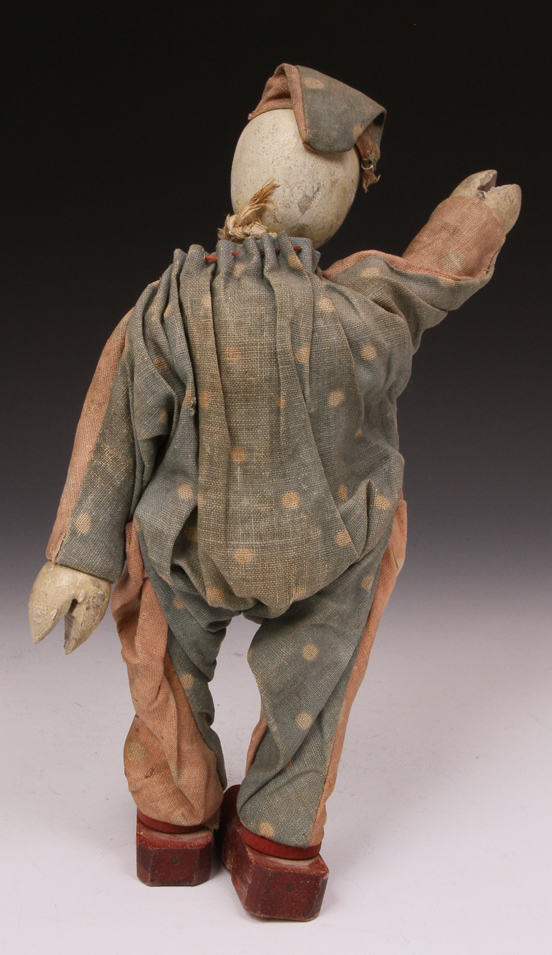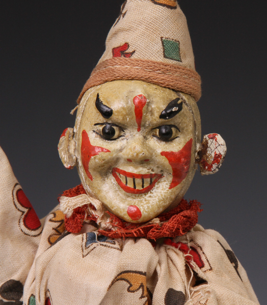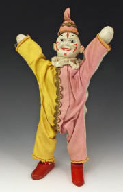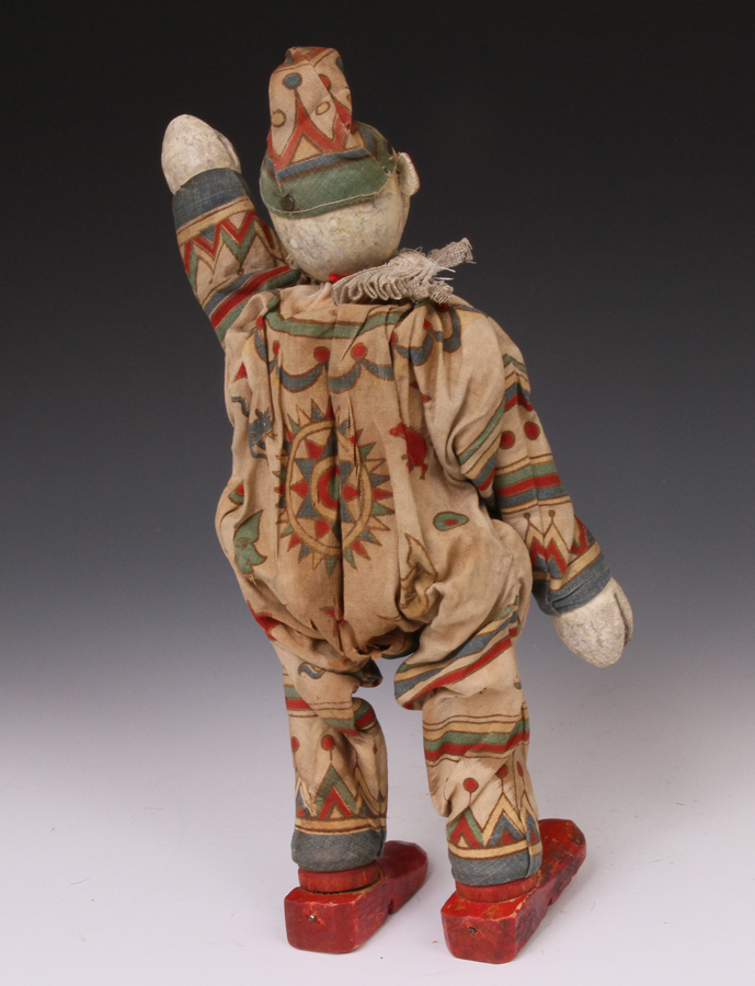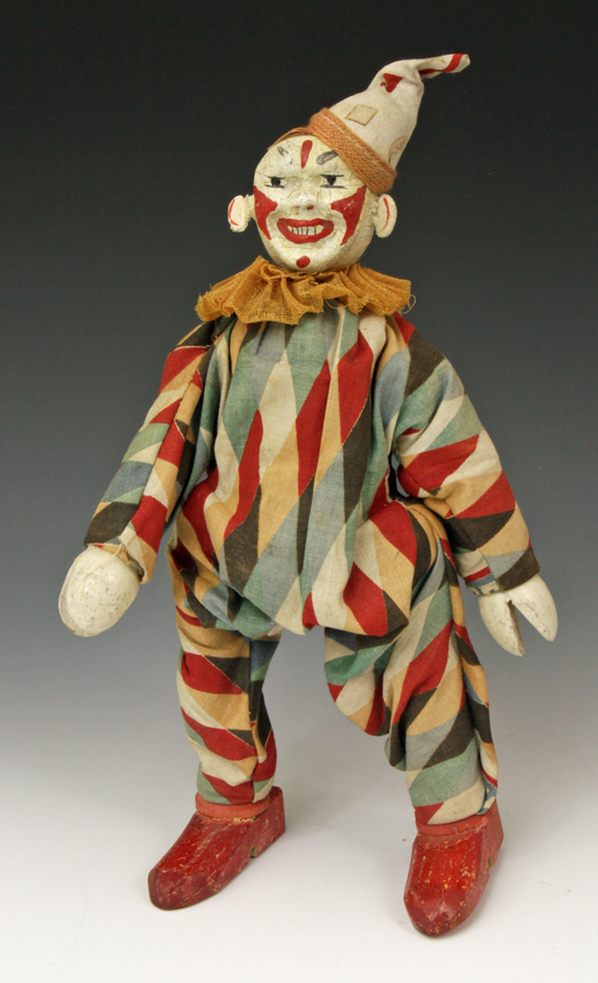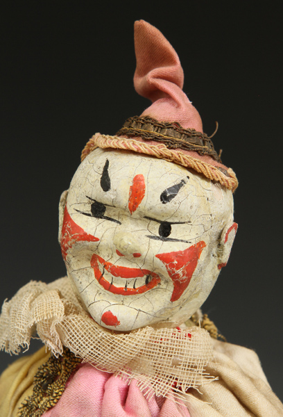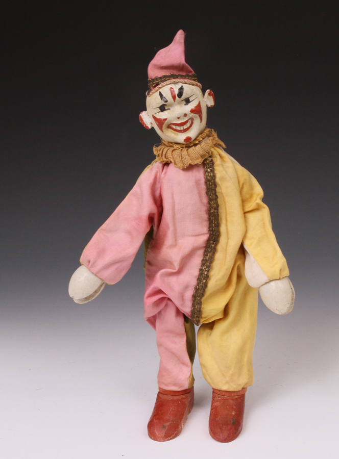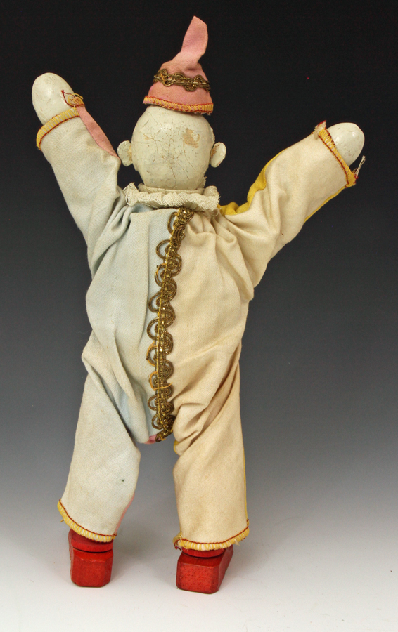 clown from ca 1920s. A little paint loss to face. Suit material strong - no