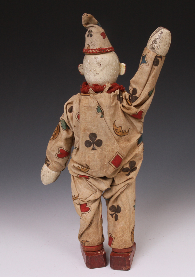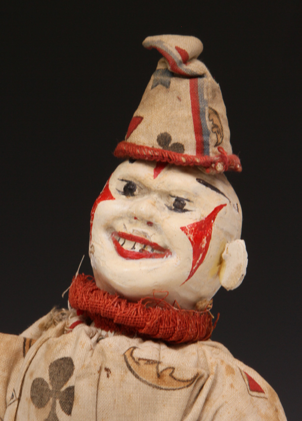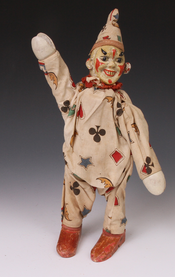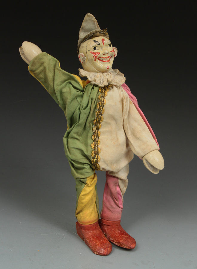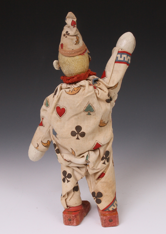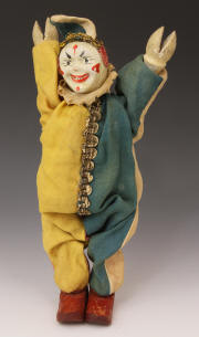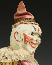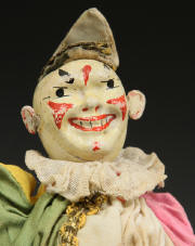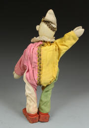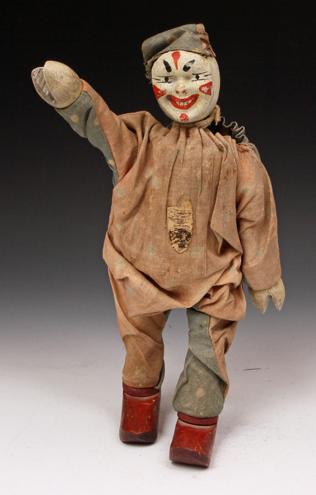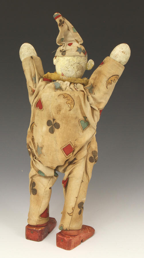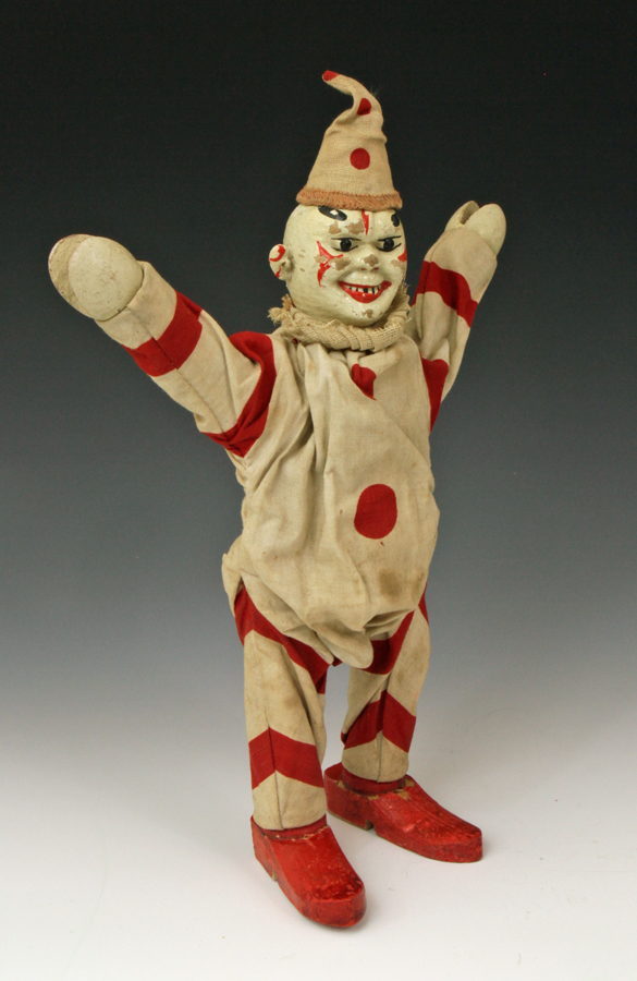 clown from ca 1920s. A little paint loss to face. Suit material strong - no