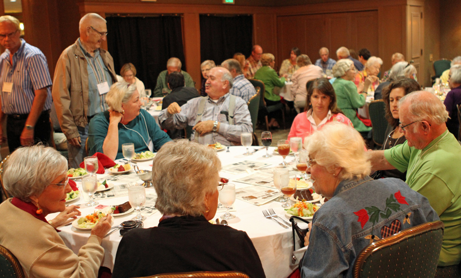 Club members socializing at dinner.