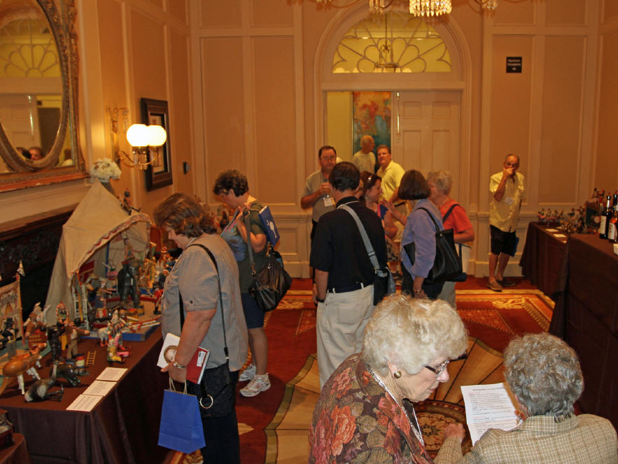 Member Joe Well's admiring a fellow member's Schoenhut collection shown
