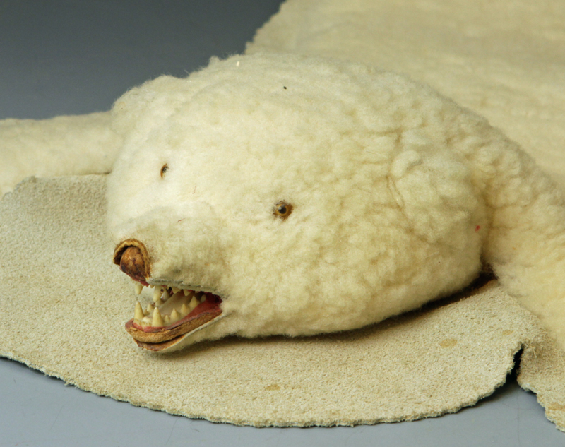 Polar Bear Rug - age unknown. Appears to be made of wood and leather.