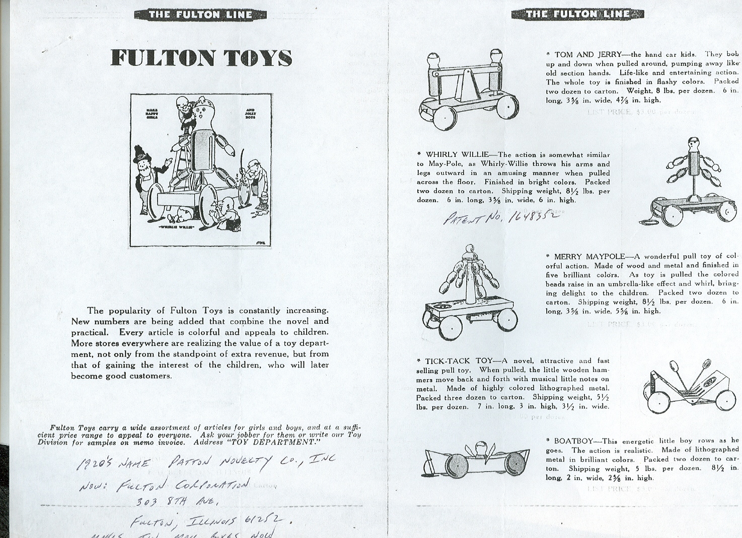 The Fulton Toy Company of Fulton, Illinois, a division of Patent