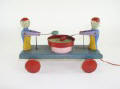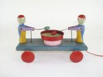 typically have wooden wheels, bodies, faces and beads while their arms