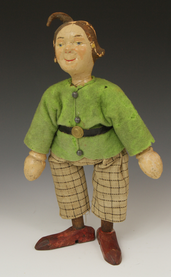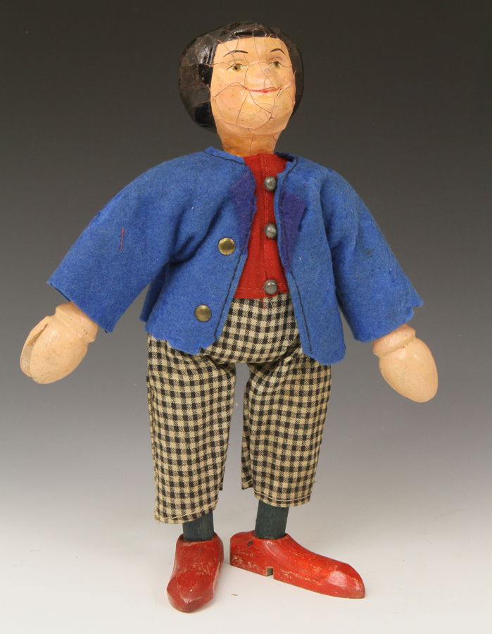with true painted eyes. Generally good paint condition. Missing part of his