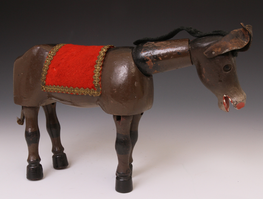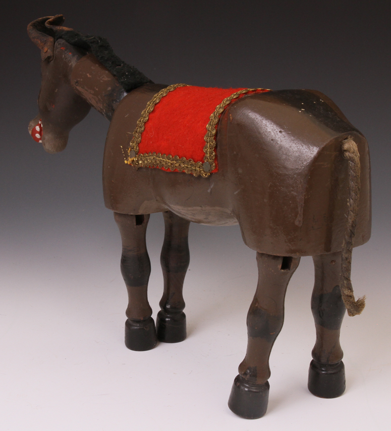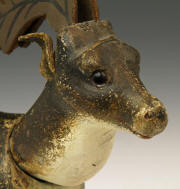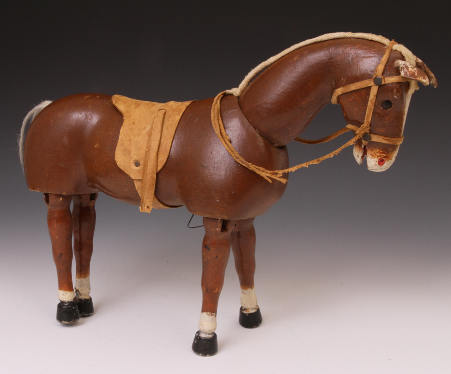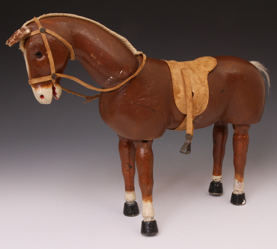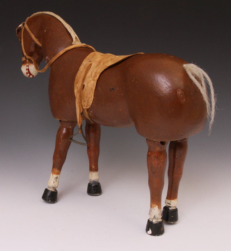 with wool tail (mostly missing) and small riveted stirrups. One stirrup