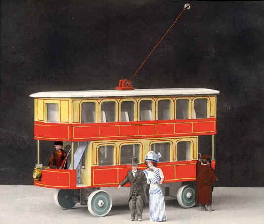 ![]() A wooden trolley car shown in the same Christian Hacker catalogue as the guard house (Nuremberg Toy Museum) |