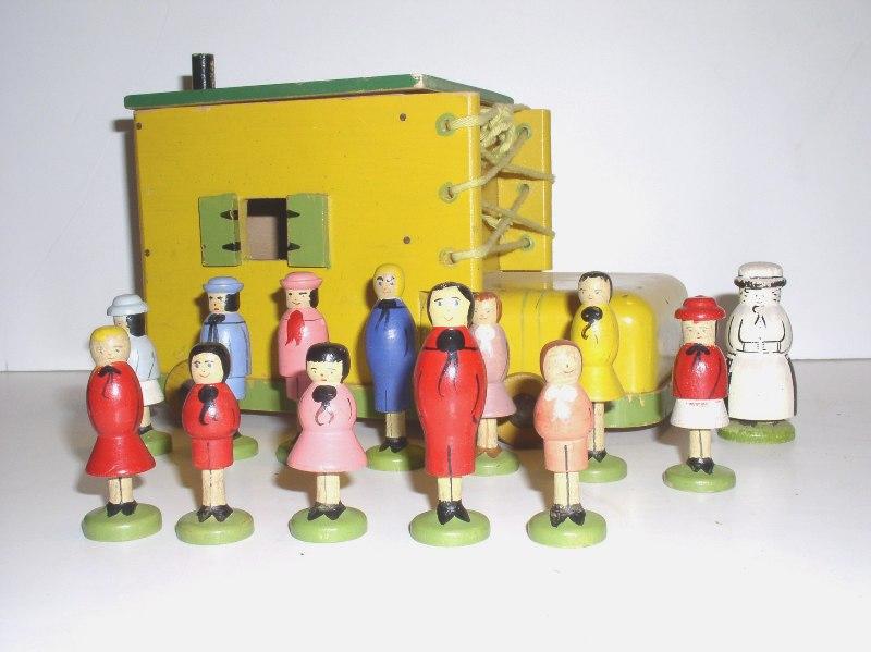 ![]() Peg Play Farm #671 c. 1947 9”L x 4”H x 3.5”W $30 - $40 + $40 w/12 Bottles |