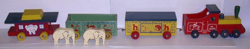 Color Circus Train #1050 c. 1949 42.5”L x 5”H x 5”W $150 - $200 |