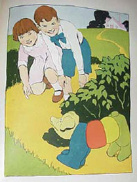 | Esther M. Ames wrote this charming book in the 1920s featuring Twistum toys. The cat, rabbit, elephant, bulldog, and pig are characters in the book. Below are illustrations from the book. | |