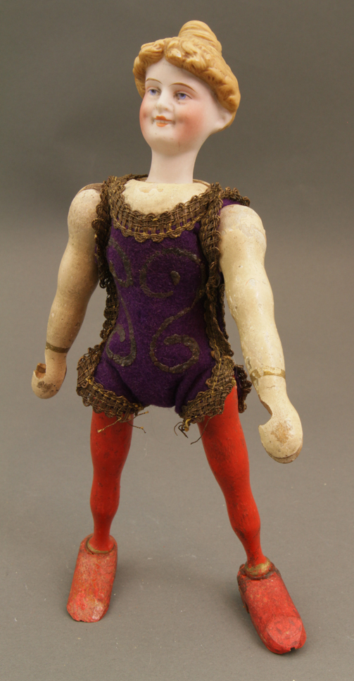 Bisque Head Lady Acrobat - complete and all original. Paint loss
