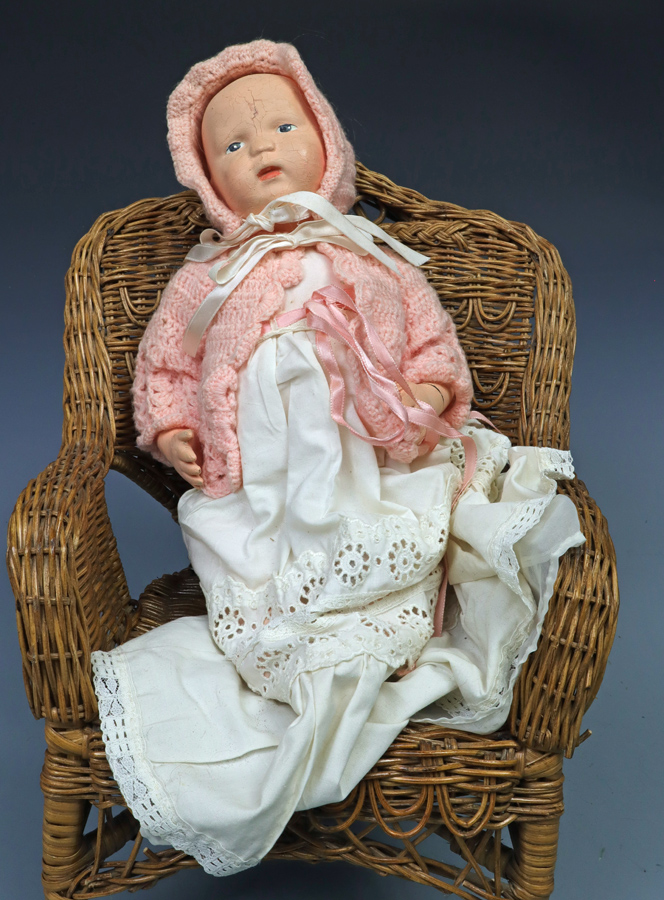 | TD19-N | She is about 21.5 inches tall. Mechanically sound. Sleep eyes work. Point of focus of the eyes are at about 12 inches away, I would guess. New wig and clothes. Face paint very good - I don't see obvious repaint anywhere. $190 Sold |