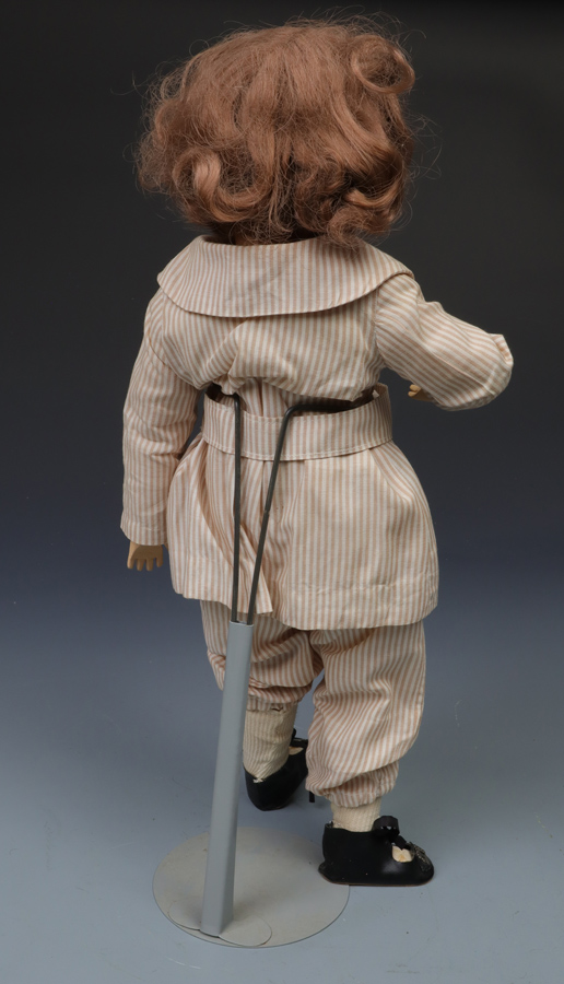 back. Mechanically sound. New nice suit. Sleep eyes work. Possibly original