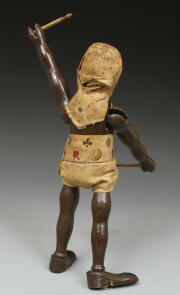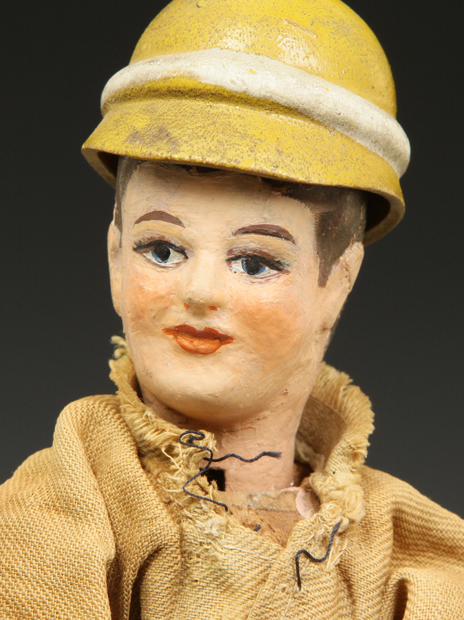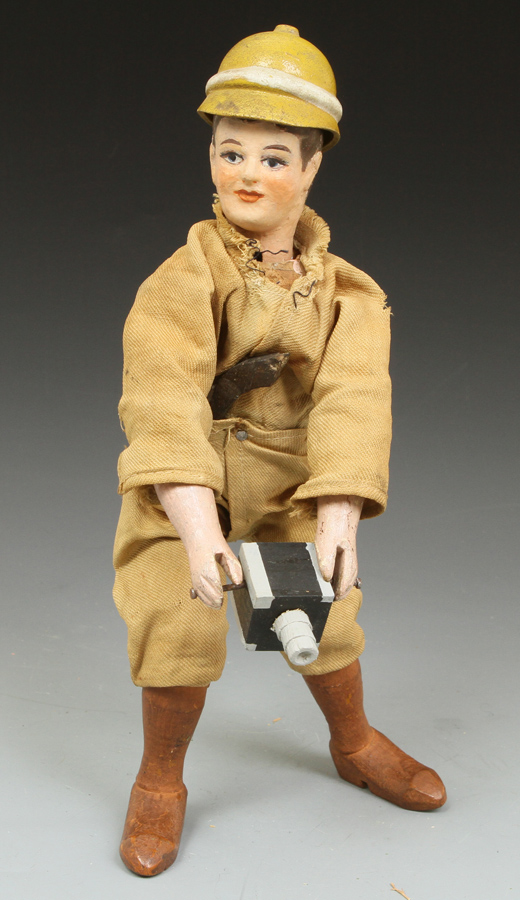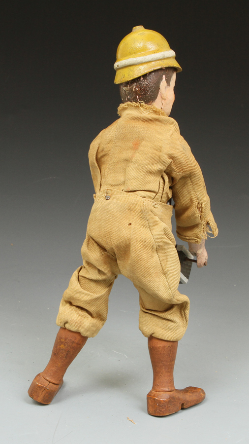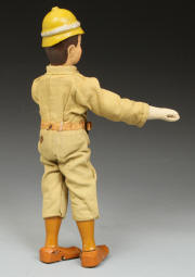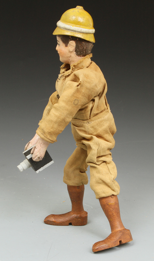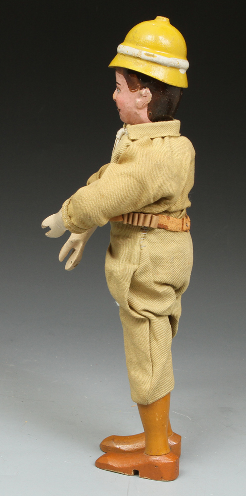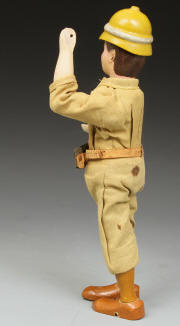 | TR09 | Teddy Roosevelt Hunter - in excellent condition except for head. Over paint around face and some on hair. Eyes, nose, mustache, and goatee original. See pictures at right. His suit is very sound. Original helmet. Sold |
