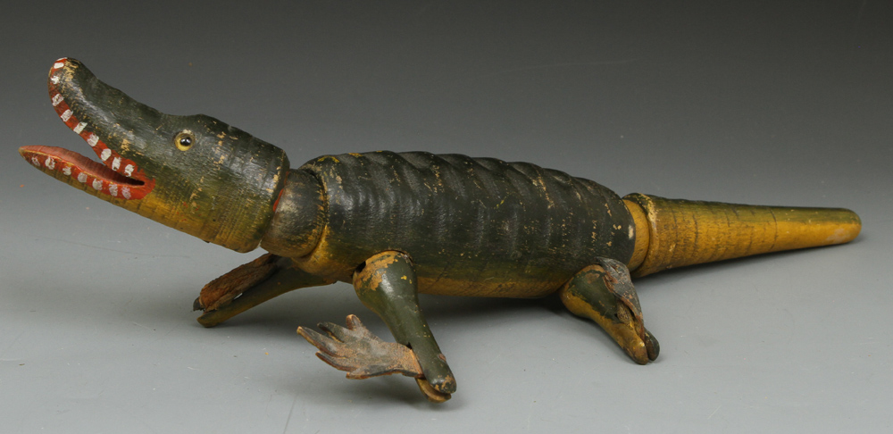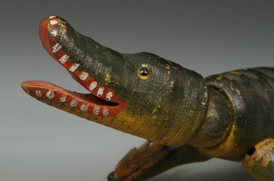 | TC33 | Glass-eyed alligator - complete, all original, and very good paint. Left eye cracked. $280 Sold |
