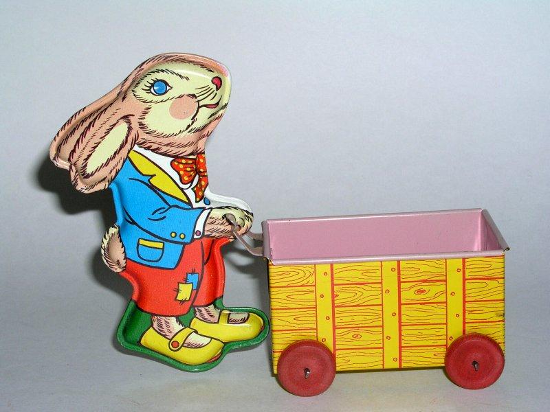 ![]() Bunny Cart c. 1920 8"L x 6.5"H x 4.6"W $45 - $60 |