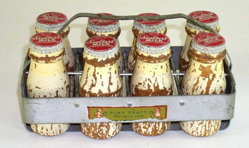 ![]() Sealtest Milk Bottles & Carrier c. 1935 8.25"L x 4"H x 4"W $90 - $120 |