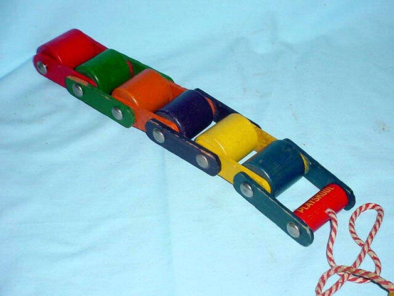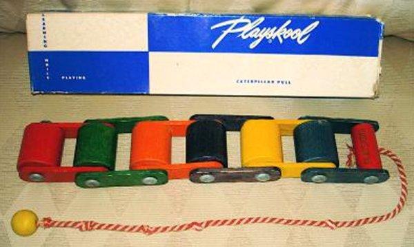 ![]() Caterpillar Pull Toy #428 1952 15.75”L x 1.5”H x 2.75”W $30 - $40 |