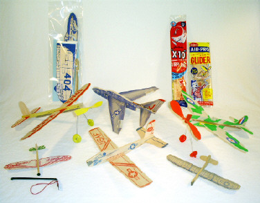Fond memories indeed. And for me, the start of what turned out to be a 35 year career in aviation. Although hand-made airplane-like (or bird-like) flying toys appeared in the 1800’s, it’s unclear exactly when company-made RTF toy airplanes first became available. Some model airplane kits reportedly appeared as early as 1910. 1911 issues of “Aircraft” magazine (about “real” airplanes) had numerous ads from several manufacturers for model airplanes in kit and RTF form. Most of these were expensive to buy. In a time when $20-25 per week was a really good, working-class salary, the Ideal Model Aeroplane Co. (which became the Ideal Toy Co.) advertised airplane kits for $4-6. RTF versions sold for as much as $20. Most of the Ideal RTF airplanes were “factory built” examples of their kit aircraft. From 1914-20, Ideal offered wood and fiber board RTF gliders for 45 cents. Though not inexpensive by any means, these can probably be considered some of the fore-runners of our “toy” airplanes. In the 1920’s and 30’s, balsa wood became more readily available and the number of simple RTF toy gliders increased. Certainly the Charles Lindbergh phenomenon also boosted sales of toy and model airplanes of all types. However, most were still only available from hobby shops, finer toy stores or through mail order. Many of the companies that would become household names in the toy and model airplane world … American Junior Aircraft Co., the Paul K Guillow Co., the Cleveland Model & Supply Co., the Testor Corporation and Comet Model Airplane & Supply Co. … all had their beginnings in this period. During World War 2, balsa wood was considered to be a