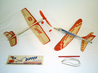 Some of the gliders, we merely tossed into the air. Some we shot skyward with rubber band catapults. Others had rubber-band “motors” that we wound furiously and released to fly off under their own power. (If they were rubber-powered AND had an "undercarriage" ... wheels & struts ... they took on the moniker "ROG" because they could actually "Rise Off the Ground".) Many youngsters loved to fly toy airplanes, but … like me … lacked the building skills necessary to assemble those marvelously complicated balsa wood stick & tissue kits. So these “ready-to-fly” (RTF) balsa wood toys provided an easy way for us to enter the realm of flight. We soon discovered that we could alter the way the gliders flew by moving the wings forward and back … or by adding weight to the nose … or by changing the shape of the wings and tail with a piece of sandpaper … or even by winding more and more knots into the rubber-band motors. Unknowingly, we were actually learning about the basics of flight in almost the same way Wilber & Orville Wright did ... experimentation. (As the legend goes, it was the gift of a rubber-band powered helicopter toy that first piqued the Wright’s interest in flying.) Many, many times, our best flights ended with the airplanes landing on a neighbor’s rooftop, or in a tree or disappearing totally from sight. But a quick trip to the store could easily replenish our “air force”. They seemed to be available everywhere, with lots of company choices. There were company names like American Junior, North Pacific, Guillow, Comet, Testors, Champion and Top Flite. And many others I can’t remember.