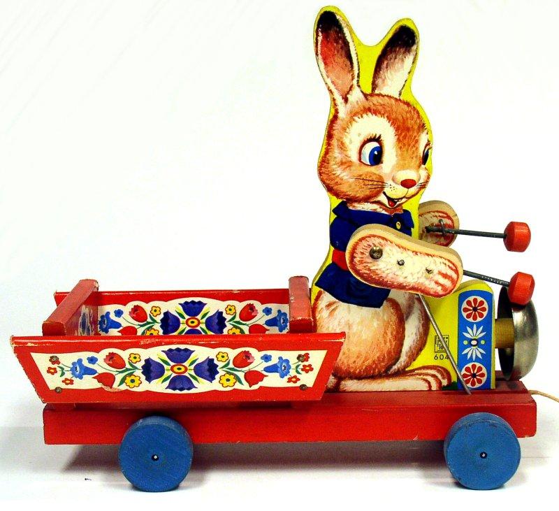 ![]() Bunny Push Cart #303 1959 9”L x 5.5”H x 4.5”W $45 - $60 |