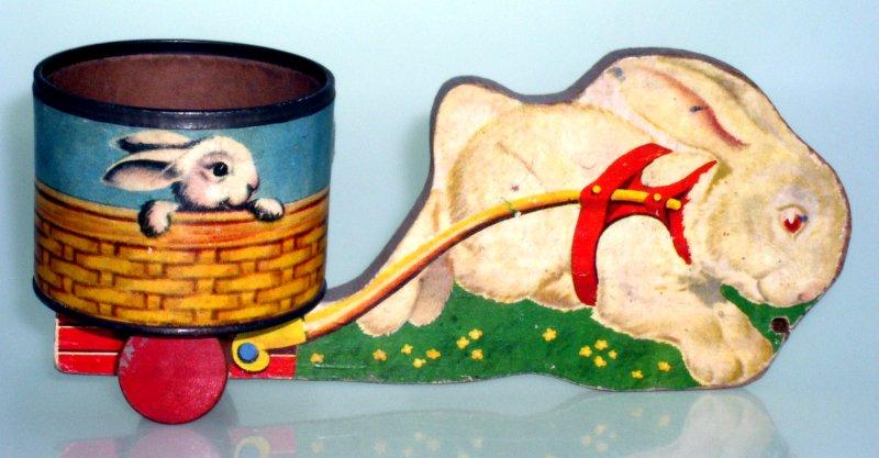 ![]() Bunny Cart #406 1950 9"L x 7.5"H x 4"W |