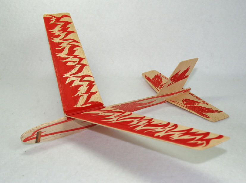 “Stunt-Flyer” toss glider (ca early 1960’s) – Reported to be the first glider NP made, the Stunt-Flyer was known for its long, smooth glides in light winds … a “floater” to be sure. This particular example was produced as a promotional item for “Firebird” gasoline made by the Pure Oil Co … and has some of the most spectacular graphics ever placed on a “toy” glider. |