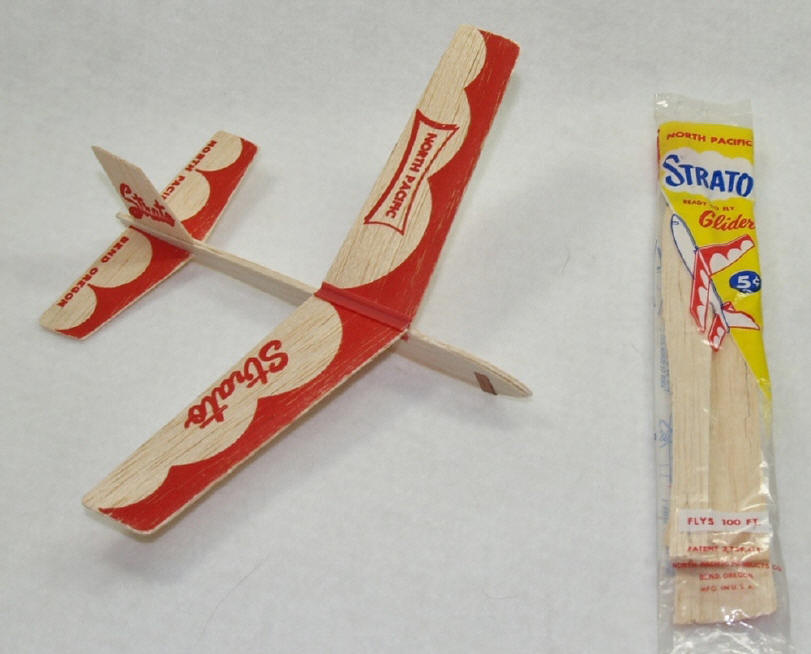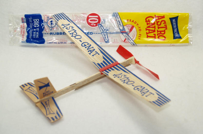 North Pacific Products Co. During the period from the mid 1950’s to the mid 1970’s, North Pacific made some of the most popular (and best remembered) RTF airplanes. They were probably best known for their wide range of great performing ROG’s. The company was founded in Portland (OR) in 1952 by two brothers, Charles and Wally Cleveland. The Cleveland brothers worked at Jim Walker’s American Junior Aircraft Co from 1946-53. While still working at AJ … and reportedly without Walker’s knowledge … the brothers were also making and selling their own brand of gliders from their home. To reduce production costs, Walker wanted to take advantage of the wood curl generated by his company’s advanced balsa slicing machinery … especially during the wing-slicing process. He directed Charles to create a plastic clip that could quickly affix the sliced (and curled) wings onto the fuselages of smaller AJ gliders and ROG’s. This would allow the company to make airfoil wings for the lower-cost aircraft without using costly wing steaming equipment. Wally engineered a small extrusion machine at AJ to produce the plastic clip. Subsequently, the brothers quit American Junior and moved to Bend (OR) in 1954 to open a new factory subsidized by the city for their North Pacific Products brand. Walker felt the “battle lines” were drawn when NP started mass-producing gliders in Bend in direct competition to AJ, using similar wing clips and slicing machinery. Although the legal fees piled up and acrimony grew, both companies continued unabated in churning out airplanes using machine-sliced wings and plastic clips. (Virtually every NP RTF aircraft used the clip at the time.) It was during this period that Walker’s health steadily deteriorated. He passed away in 1958, before the legal issues could be totally resolved. Once Pactra Chemical Co absorbed AJ in 1963, Pactra withdrew further legal action as their interest steadily waned in keeping the AJ product line going. Legal issues notwithstanding, the Cleveland brothers developed several innovative gliders and ROG’s. Their designs were relatively easy to scale up and down, so the company was able to produce an extensive range of aircraft sizes with excellent flight performance … based only on a few basic designs. The light and elegant Sleek Streek ROG was probably the best performer in its class and is affectionately remembered by model airplane enthusiasts to this day. Likewise, the names Strato, Skeeter, Jet Flyer, Chuck’r and Astro Gnat will spark childhood memories in many of us. Due to the sagging public interest in wood gliders in the 1960’s, NP turned its attention away from gliders and ROGs. They patented a tail-less “gliding” kite design (“glite”) in 1966 and a wooden boomerang design in 1968. Both products went into production, but the company continued to struggle. By the early 1980’s, North Pacific had ceased operations completely and the company assets had been sold by its bank to the Comet Model & Supply Co. Comet in turn was purchased by the Paul K Guillow Company in 1998. |