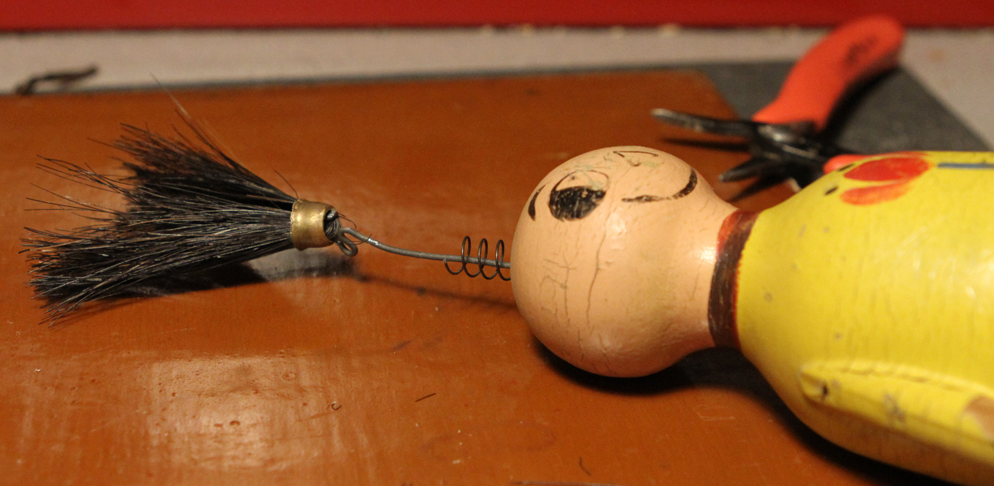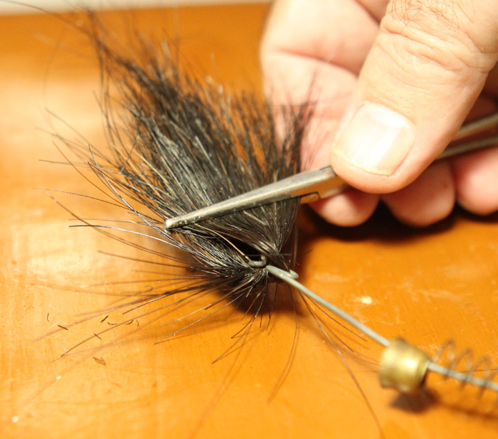 | 10. At the hair bunch's center, work it into the rod hoop.