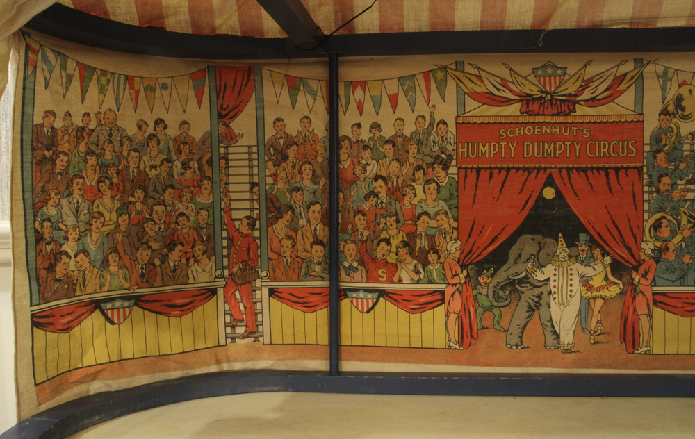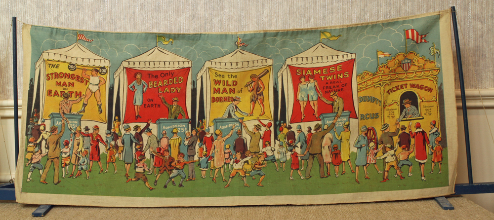 it was cheaper to make. Some staining on the canvas just like on real circus