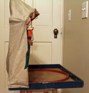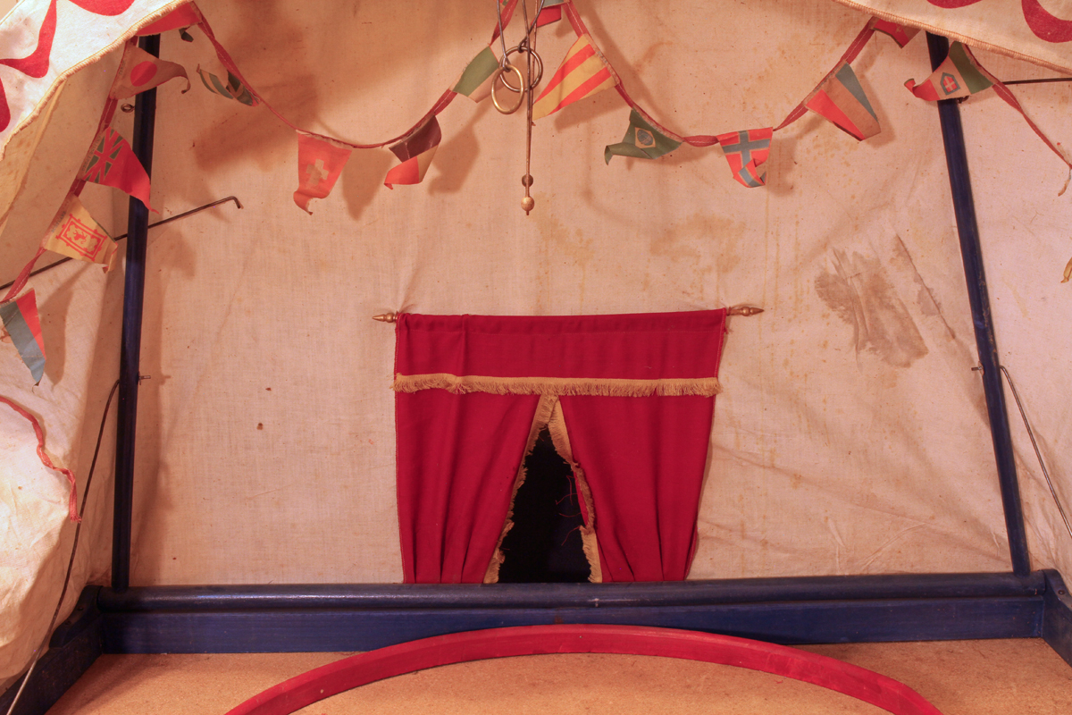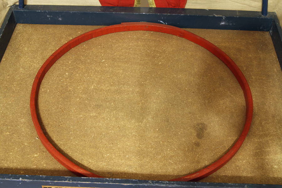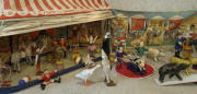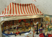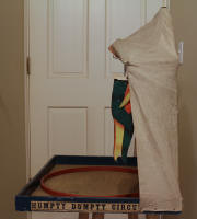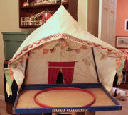 ![]() Inside the upper section of the tent showing the acrobat's trapeze and rings and the hinge mechanism |