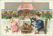 Panels - very colorful tent. Shows artwork typical of the 1920s -