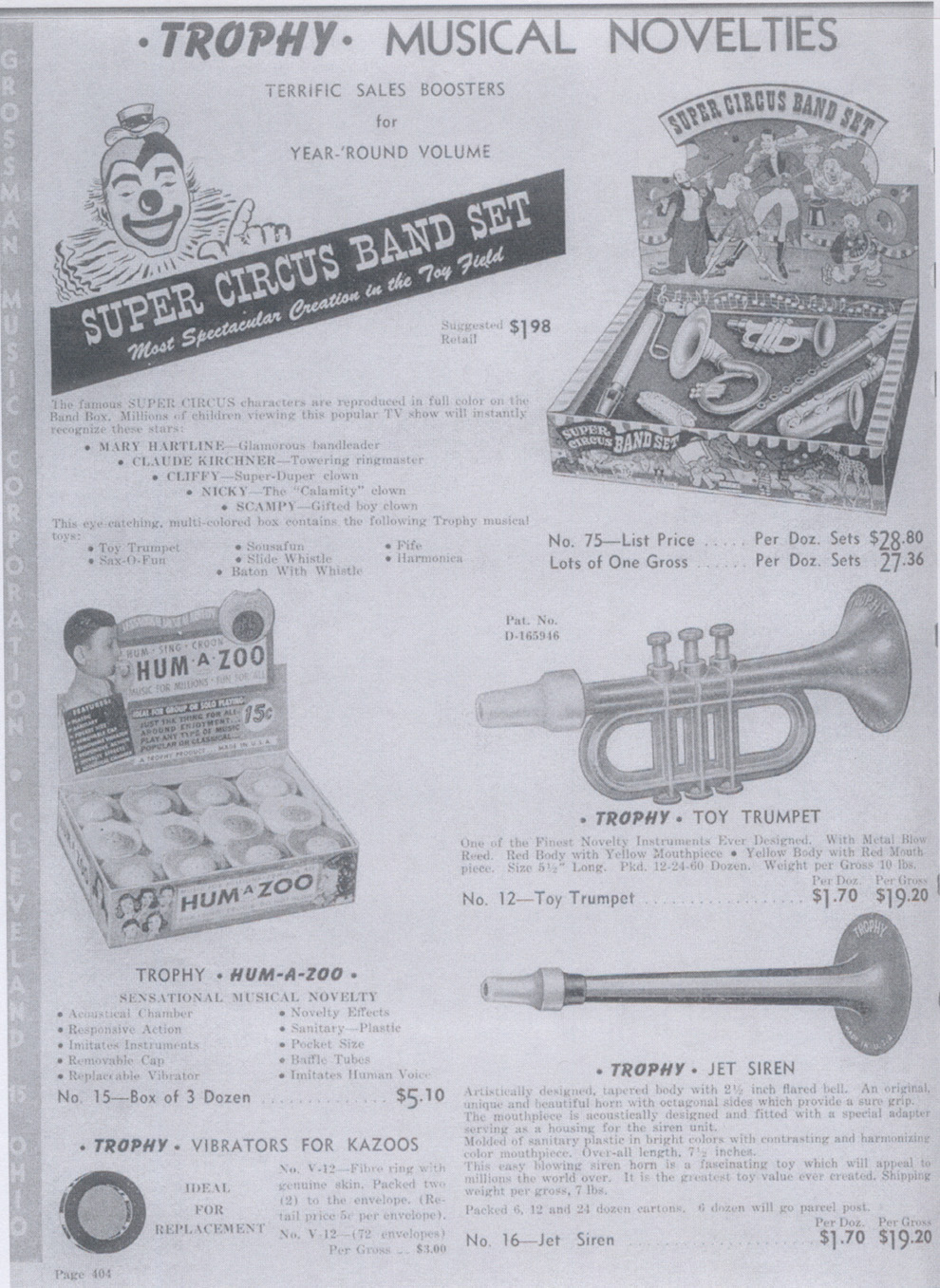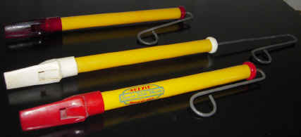 The first batches of 1940s Rocket whistles, Hum-a-zoos, Flutophones,