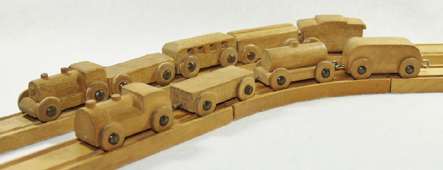 From a collector’s viewpoint, there is something very appealing about the simplistic yet artful designs of these toys and the heirloom feel of the hardwoods used. These little trains remind us of simpler and more innocent times. On a personal level, these trains were critical to the childhood progress of my developmentally disabled son. Based on recent observations, there seems to be a growing collector appreciation of these toys. Vintage train sets in excellent condition … particularly with their original packaging … are becoming more elusive and a bit more “pricey”. If you have any questions or comments, I would be delighted to hear from you. To continue your journey, click on the individual manufacturers’ links. Keep your wheels in the grooves! dcpecota@earthlink.net |